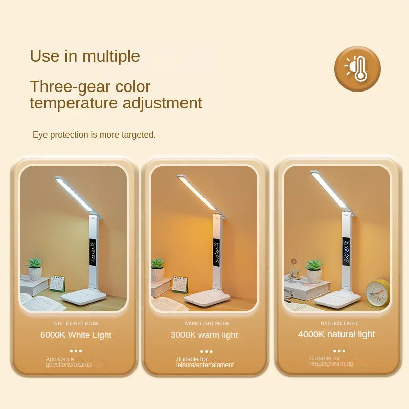 “This lamp is perfect for my kid's study area! The touch dimming and color adjustment make it easy to set the right mood for reading, and the clock display is a handy bonus. Love the USB charging feature!”