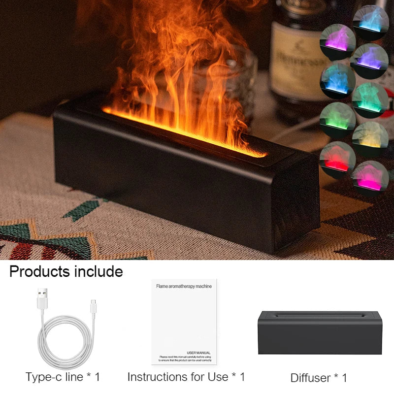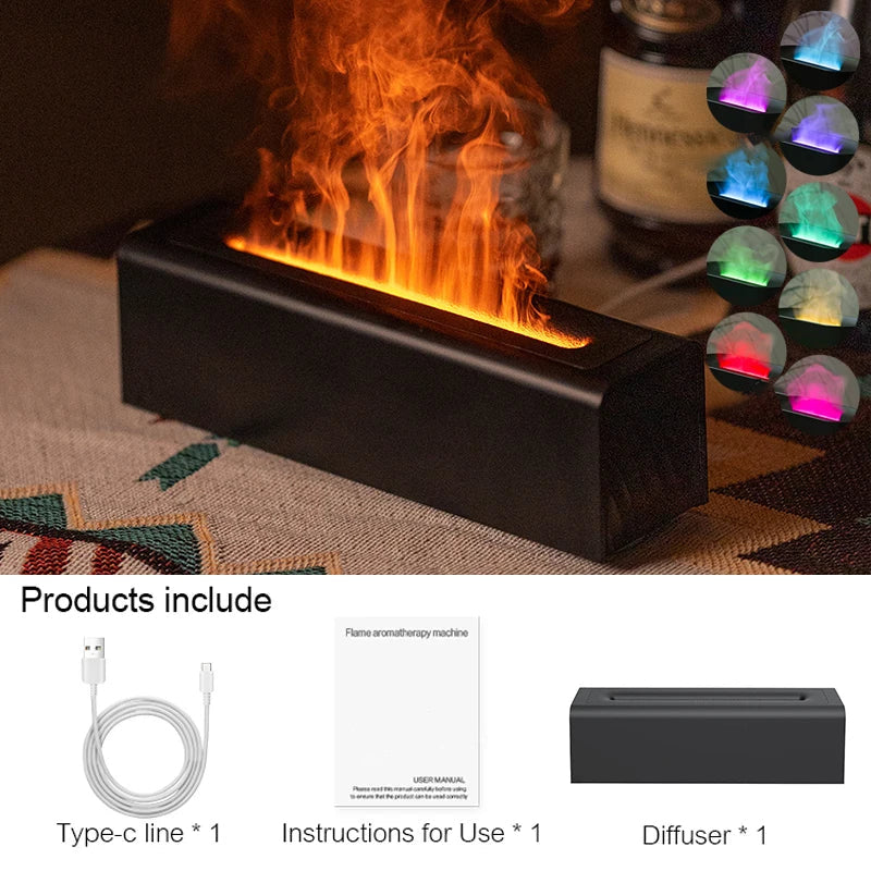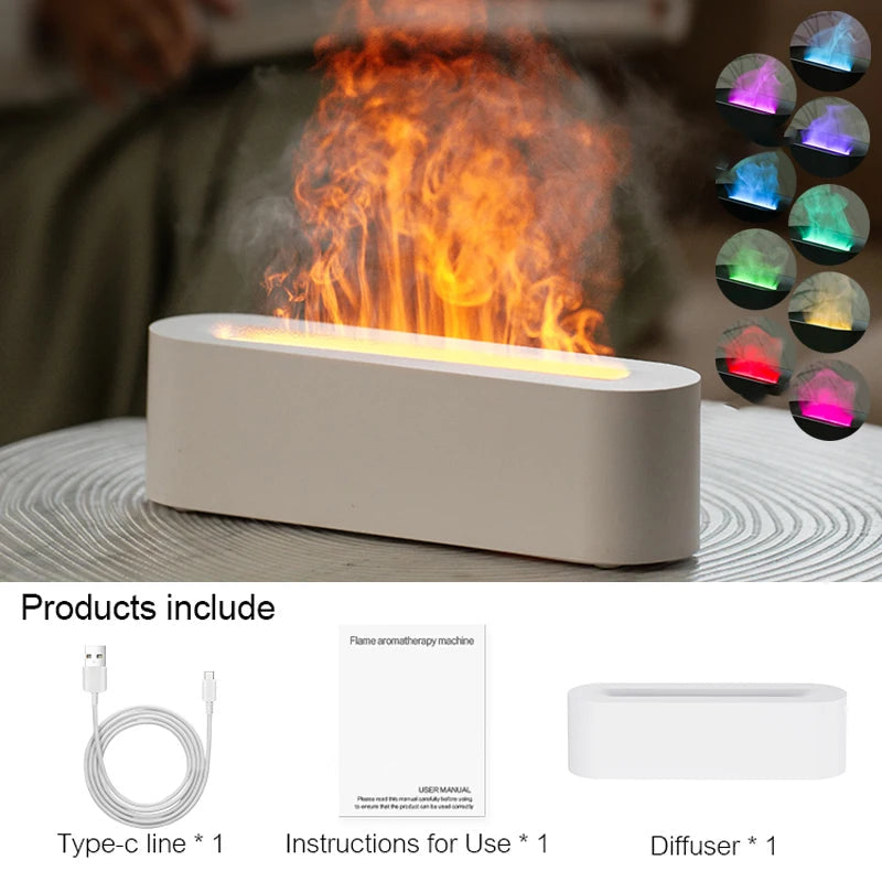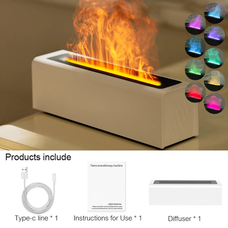 Introducing Aroma Essential Oil Diffuser with Realistic Flame Effect. This innovative diffuser not only delivers soothing fragrances but also creates a mesmerizing flame effect, offering the perfect blend of aromatherapy and visual ambiance. Its intelligent waterless auto-shutdown feature ensures safety, making it a hassle-free addition to any home. The use of BPA-free, flame-retardant materials guarantees long-lasting durability, while the colorful RGB lighting adds a serene glow to any space. Experience improved air quality and enhanced relaxation, all in one beautifully designed device.